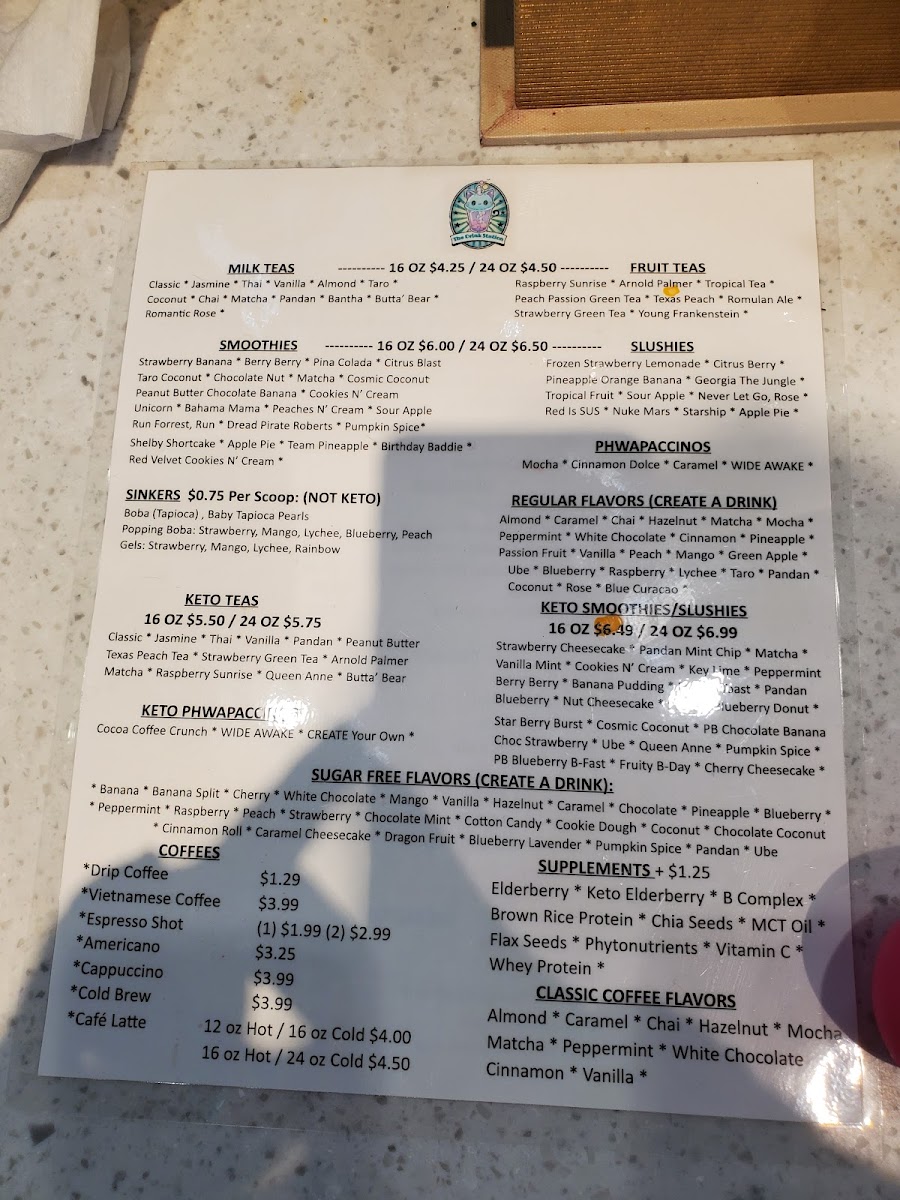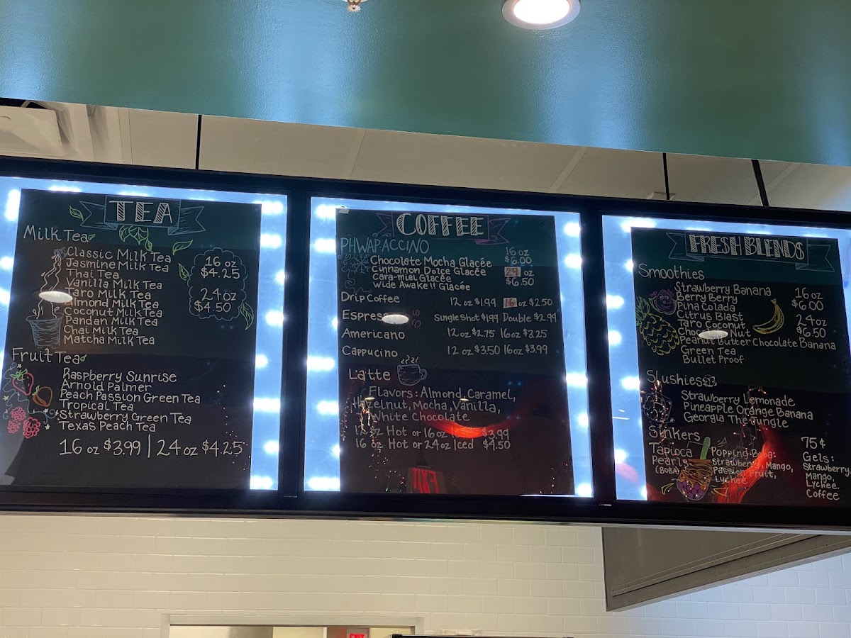 Start your adventure with their tantalizing frappes, such as the indulgent Mocha Phwap and the cozy Cinnamon Dolce, each priced at just $6.89. If you're in the mood for something lighter, explore the fruit teas like the Strawberry Green Tea and the Peach Passion Green Tea, both a delightful $4.79, delivering a perfect balance of flavor and zest.